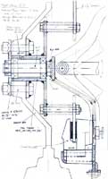 | Using standard bike wheels as on the Cyclekart, it is almost impossible to achieve this without extreme camber. My solution is to cut out one side of the hub of the Harley wheel, and modify it as shown on the preliminary sketches below: | ||||||||||||||||||